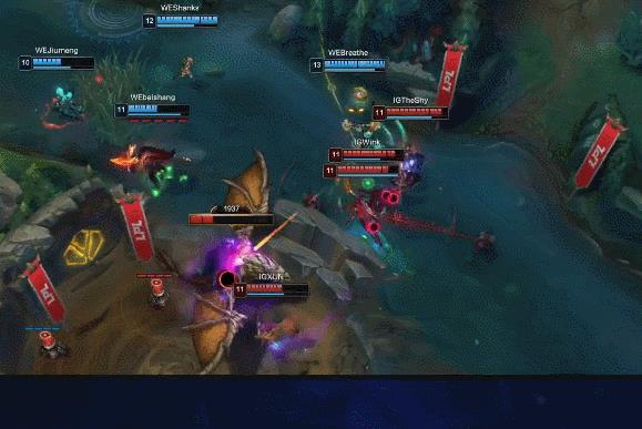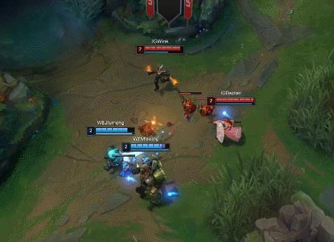 大劣势的IG没有放弃,在WE中路推进时找到了Missing加里奥的机会,无奈经济差距太大没有击杀掉加里奥。Wink卢仙空有一身武艺,却手短无法输出。