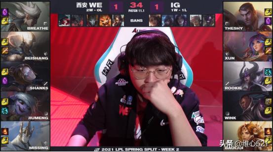 2021年,LPL常规赛第三轮,IG与WE战成1:1平,比赛来到第三局决胜局。