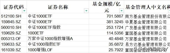中证1000:南方、华夏、广发、富国
