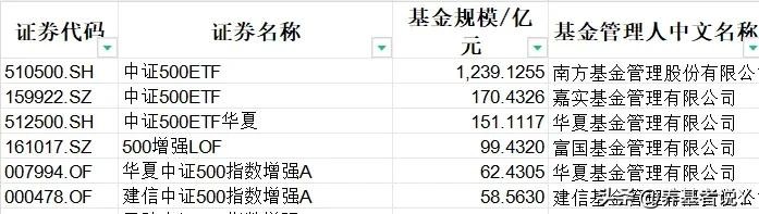 中证500:南方基金、嘉实基金、华夏基金