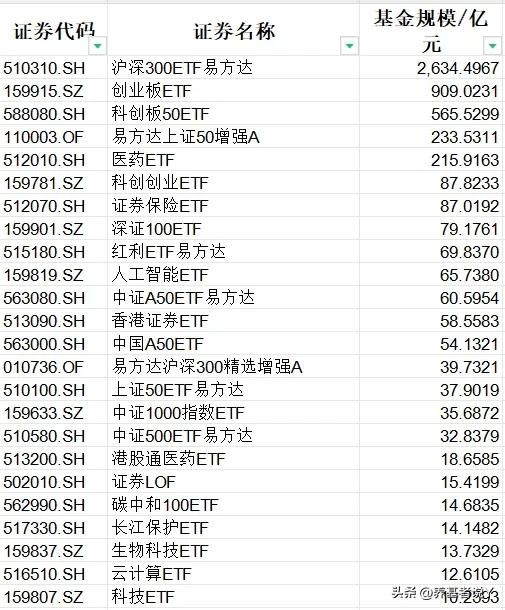 易方达基金:沪深300ETF易方达、创业板ETF、科创板50ETF、易方达上证50增强、医药ETF