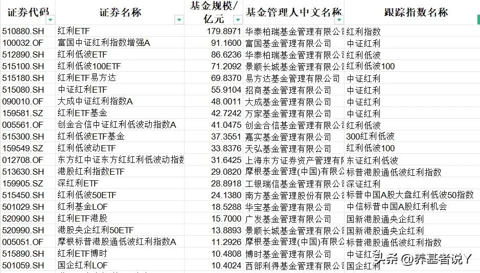 红利:华泰柏瑞、富国、景顺长城、易方达、招商