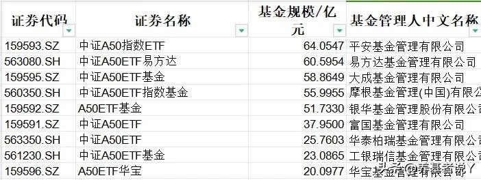 中证A50:平安、易方达、大成、摩根、银华