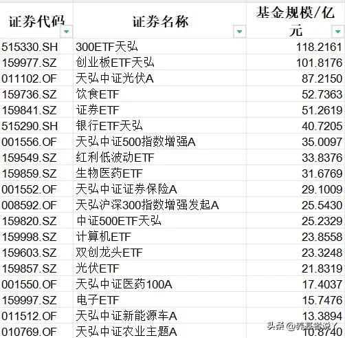 天弘基金:300ETF天弘、创业板ETF天弘