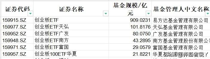 创业板指:易方达、天弘、广发
