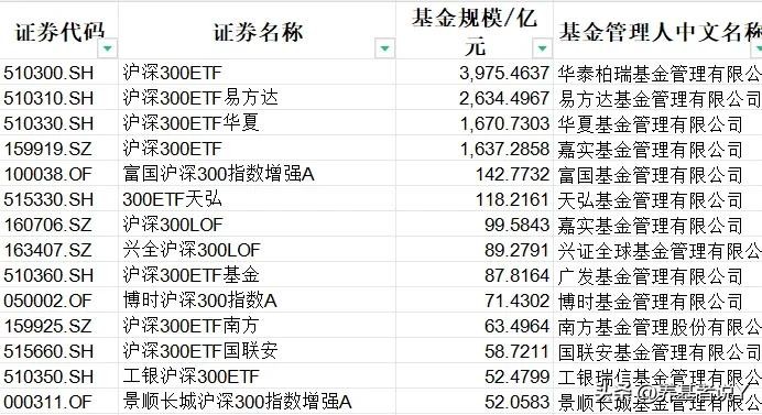 沪深300:华泰柏瑞、易方达、华夏基金、嘉实基金