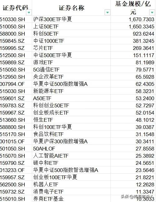 华夏基金:沪深300ETF华夏、上证50ETF、科创50ETF、中证1000ETF、芯片ETF、中证500ETF华夏