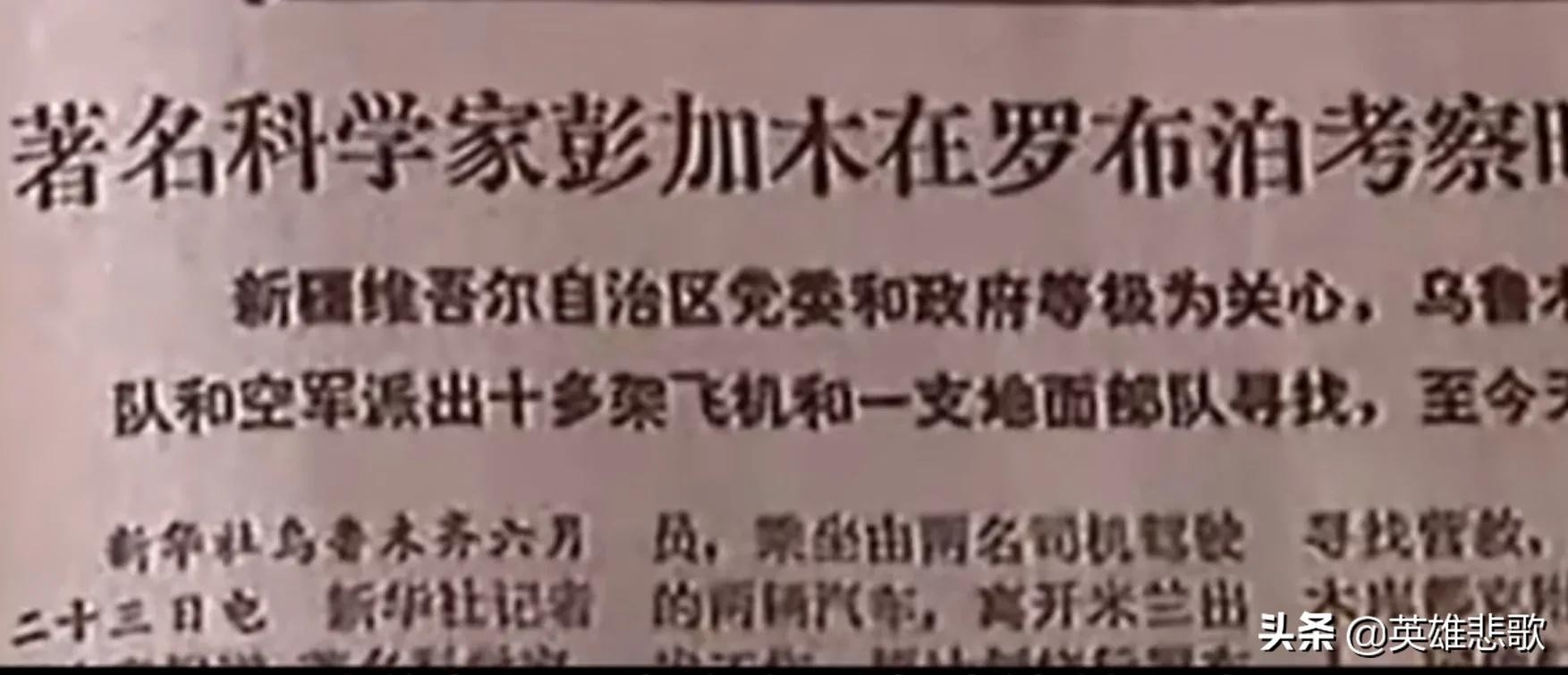 当年报纸上刊登的彭加木在罗布泊失踪的报道
