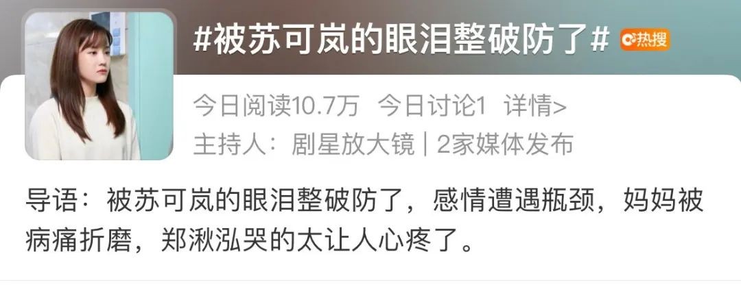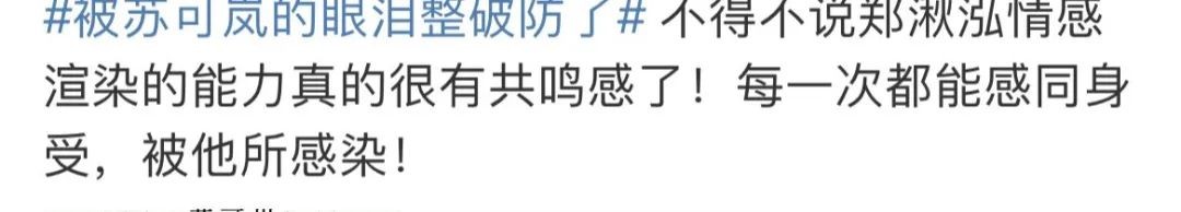 关于郑湫泓在剧中的哭戏,还上过一次热搜,很多观众都表示被她哭破防了。