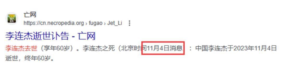 与此同样,一部分理智的网友开始质疑这一消息的真实性。他们迅速检查了多个信息源,并发现有关李连杰去世的讯息竟然来自国外的一家在线百科全书的最新更新。这一发现引发了进一步的讨论,毕竟在互联网时代,虚假信息的传播速度和广度都是令人担忧的。
