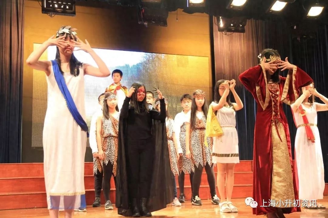 ▲学校外语节上,初二年级举行英语短剧比赛,展示自己绝无仅有的特色表演。