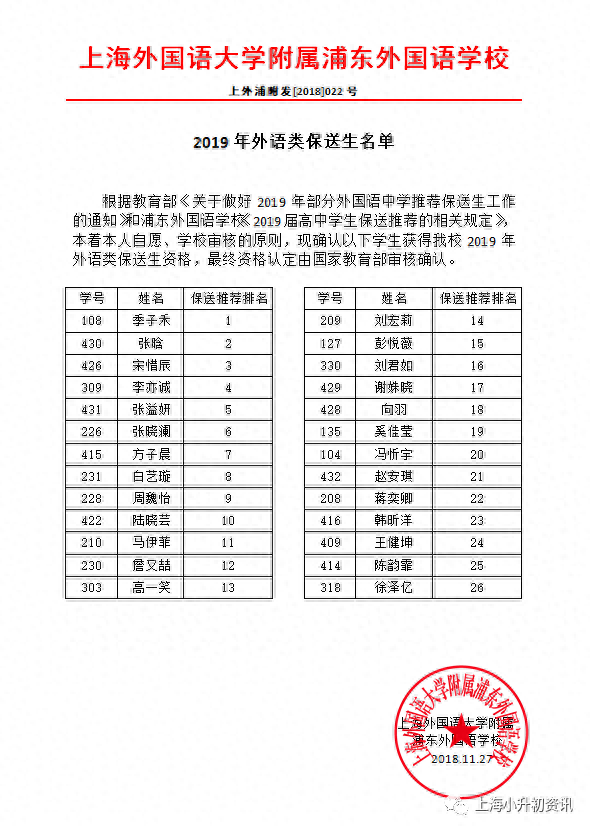 1、进入保送推荐范围的学生须具有浦东外国语学校的正式学籍。期间休学后复学和留级的同学不属于保送推荐范围。