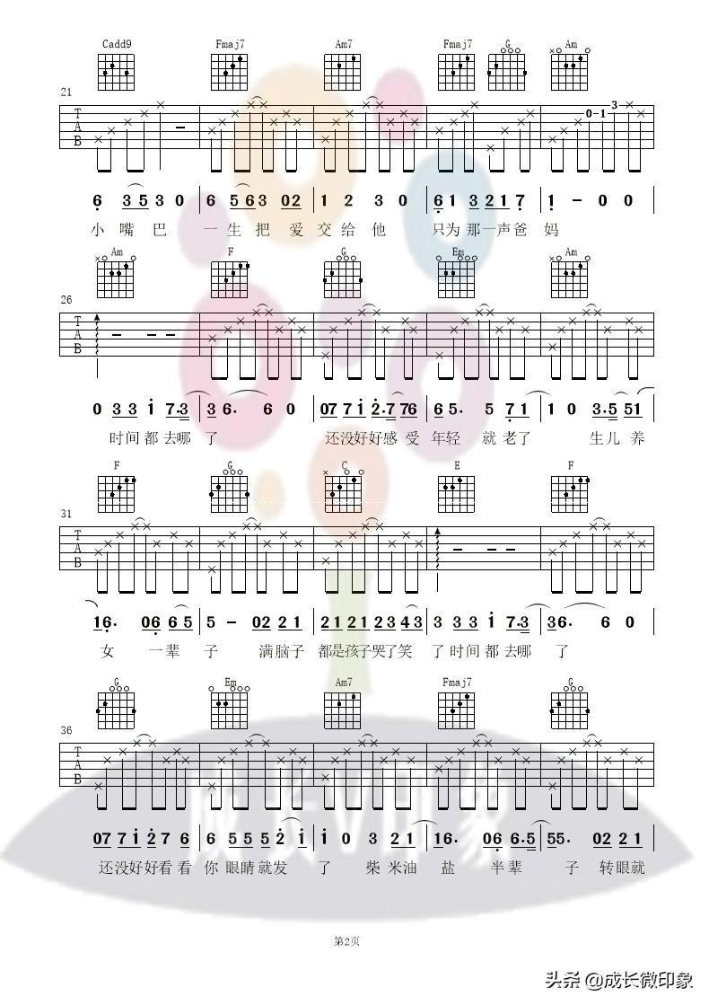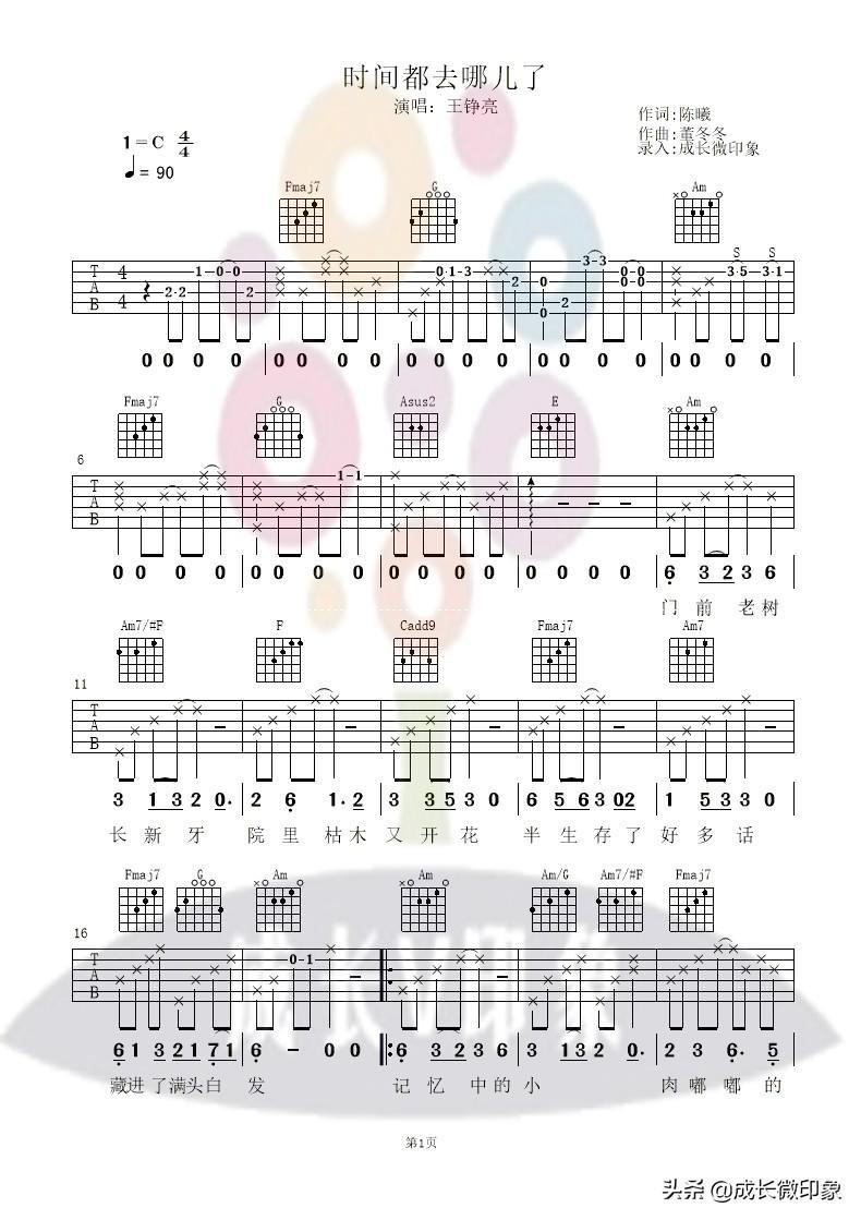 歌曲《时间都去哪儿了》前奏、间奏完整版弹唱吉他谱分享